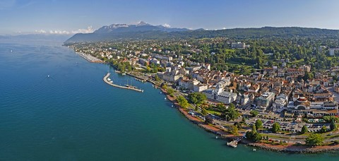 Le restaurant "Franco Suisse est situé au centre ville d'Evian dans la rue piétonne sur une belle petite place.L'établissement existe depuis les années 50 et s'appellait auparavant "Café de la Poste ".